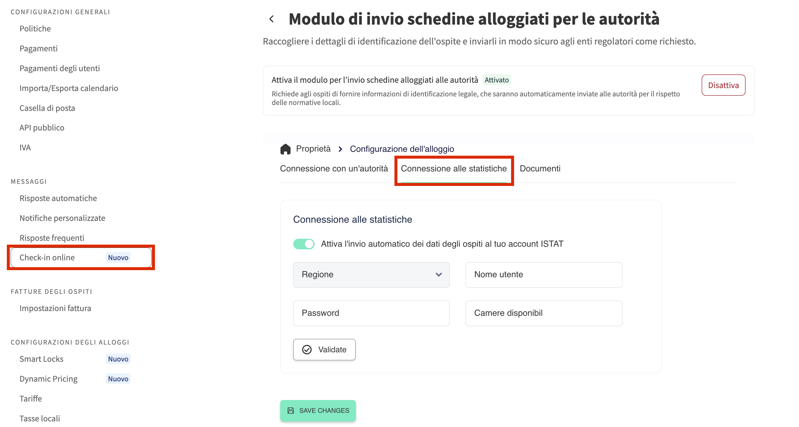 - Se non lo hai ancora fatto, per prima cosa dovrai attivare la funzionalità Registrazione degli Ospiti in Lodgify.