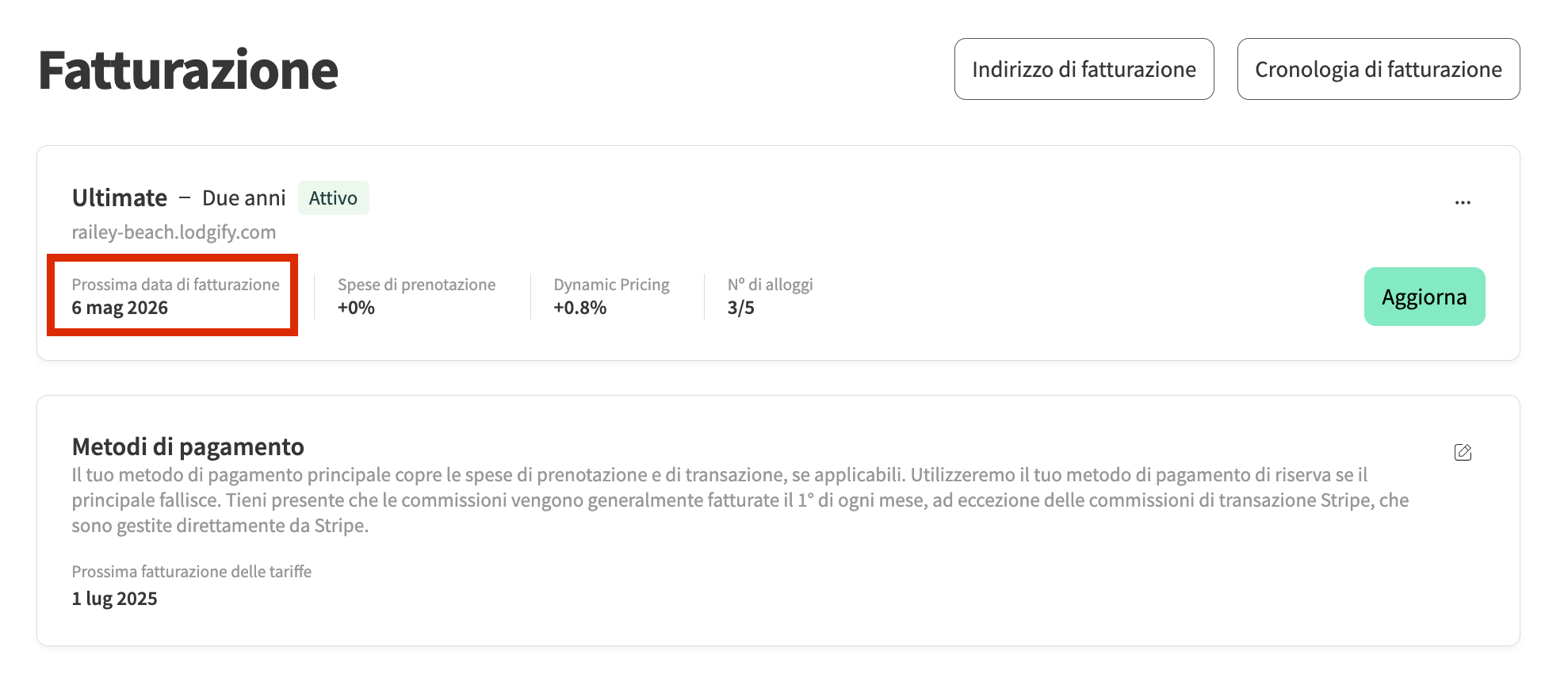 Puoi controllare in qualsiasi momento la tua prossima data di rinnovo dalla sezione Fatturazione del tuo account: