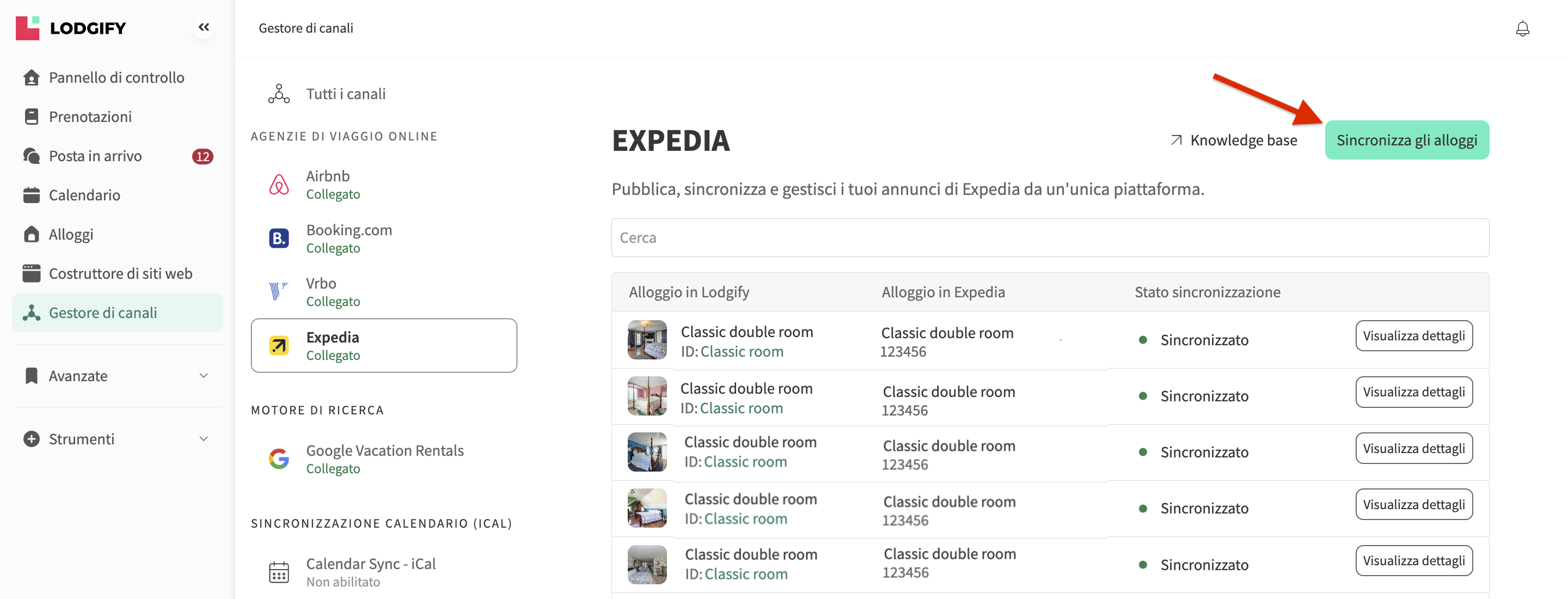 - Clicca su Sincronizza gli alloggi in alto a destra.