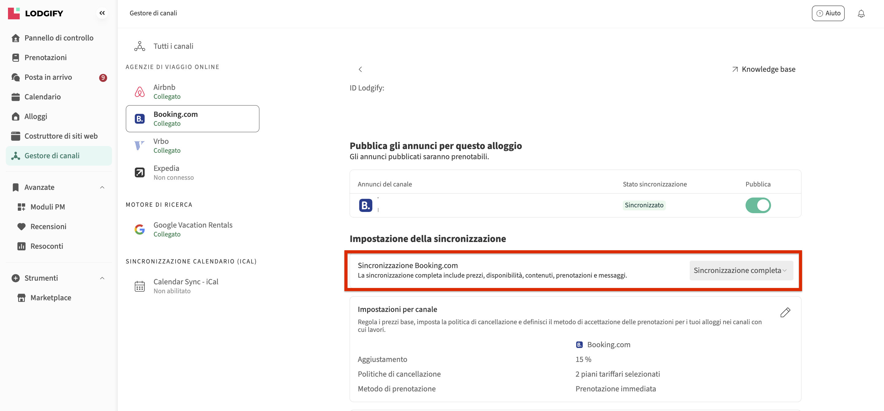 - Nella sezione di sincronizzazione dei dati di Booking.com: