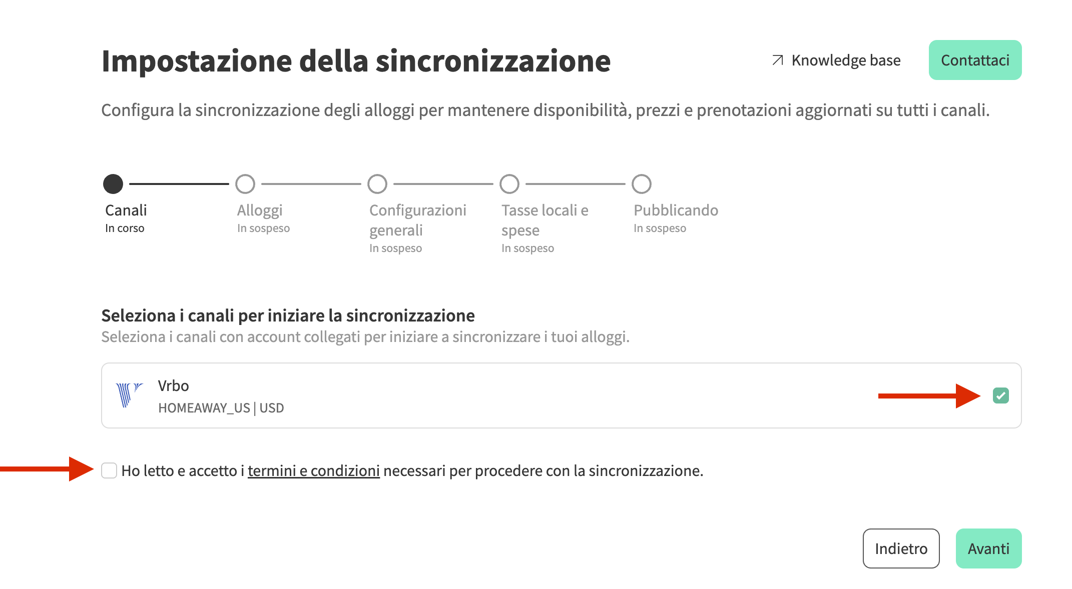 - I tuoi annunci VRBO devono essere impostati come 'pay per booking' oppure devi avere un abbonamento attivo con VRBO per tutte le proprietà.