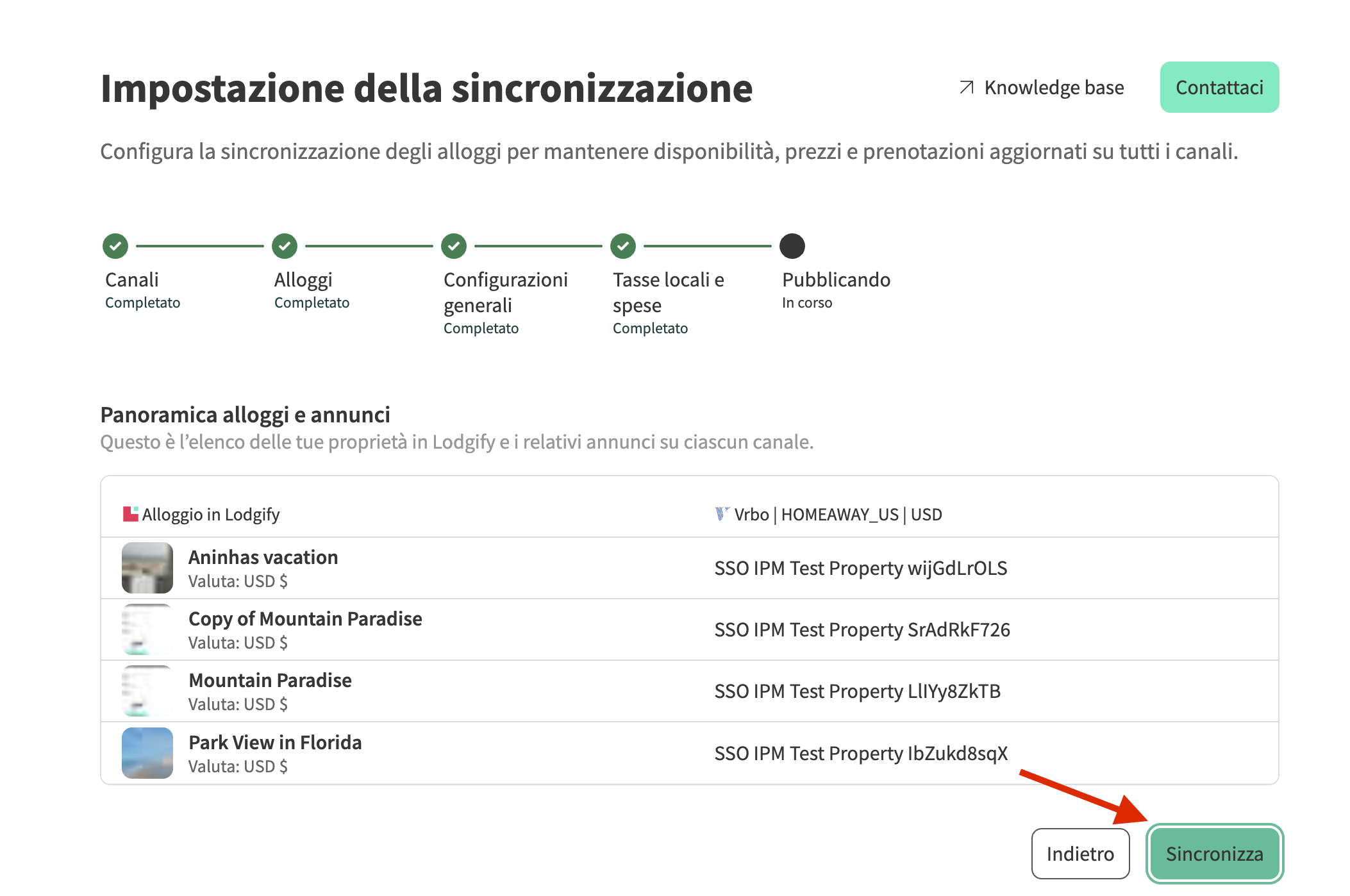 Per sincronizzare i tuoi alloggi, segui questi passaggi: