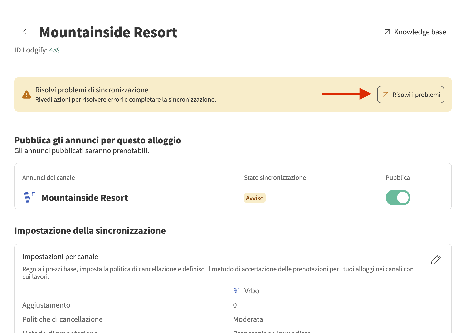 ⚠️ Importante: Risolvi eventuali problemi di sincronizzazione entro 5 giorni per evitare che Vrbo annulli il tuo progetto.
