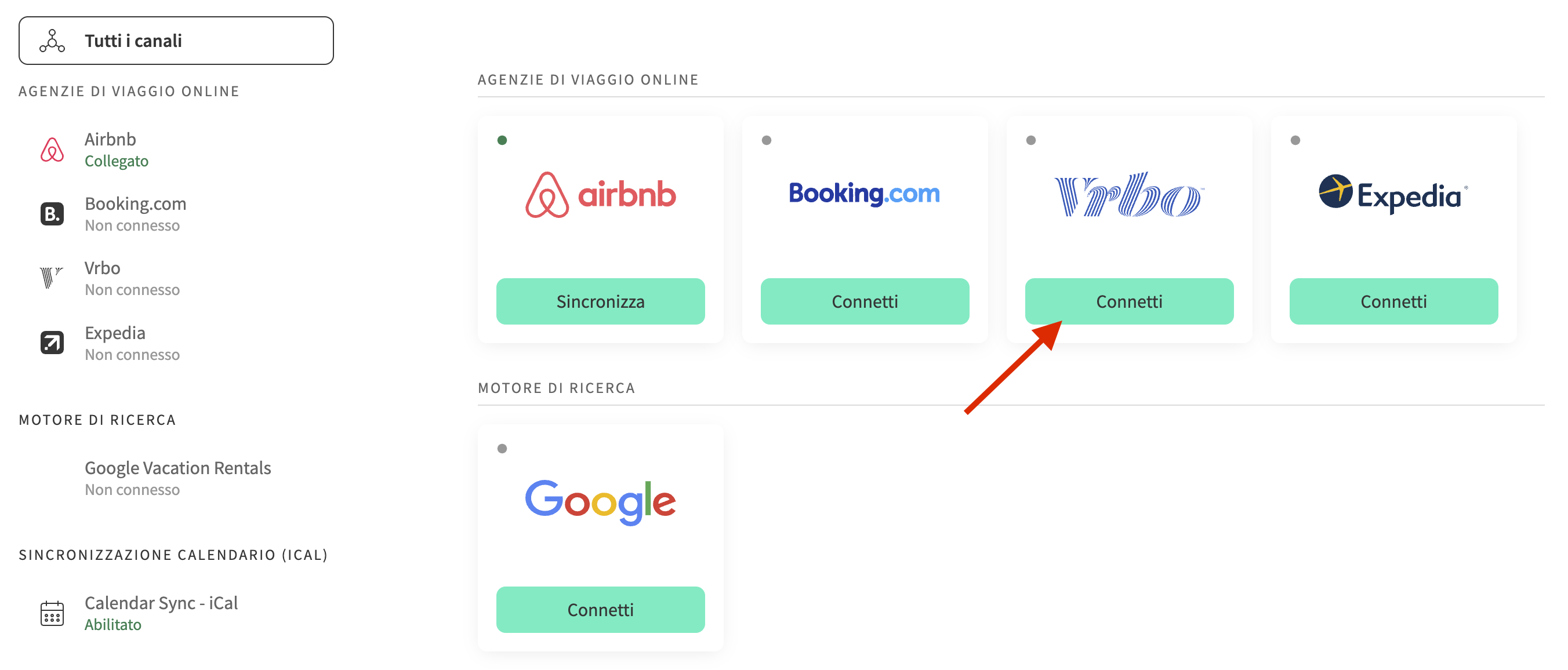 - Vai alla sezione Channel Manager ed entra nella connessione Vrbo.