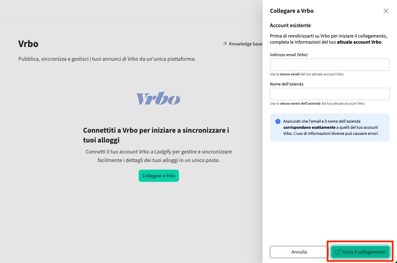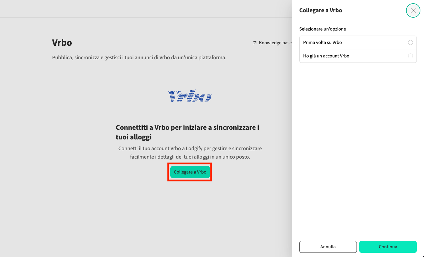 - Ogni account VRBO/HomeAway può essere collegato solo a un account Lodgify