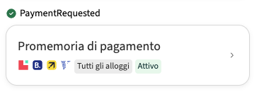 L'ospite riceverà automaticamente una notifica di "richiesta di pagamento" nella data di pagamento programmata. Questa include un link alla pagina di check-out, dove potrà inserire i dettagli della nuova carta di credito.