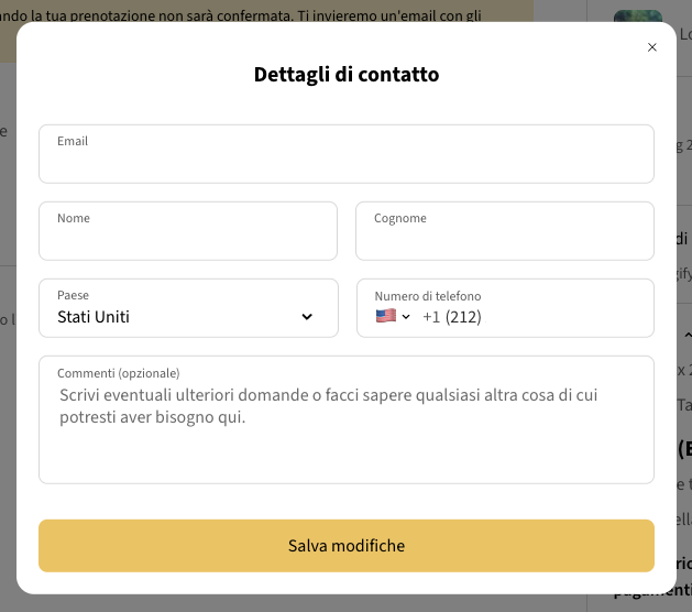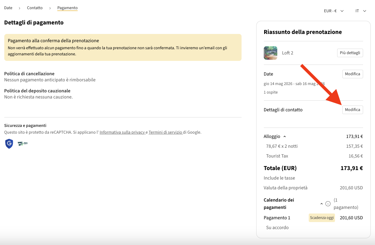 Il tuo ospite può anche modificare i propri dati di contatto quando gli invii una richiesta di pagamento.