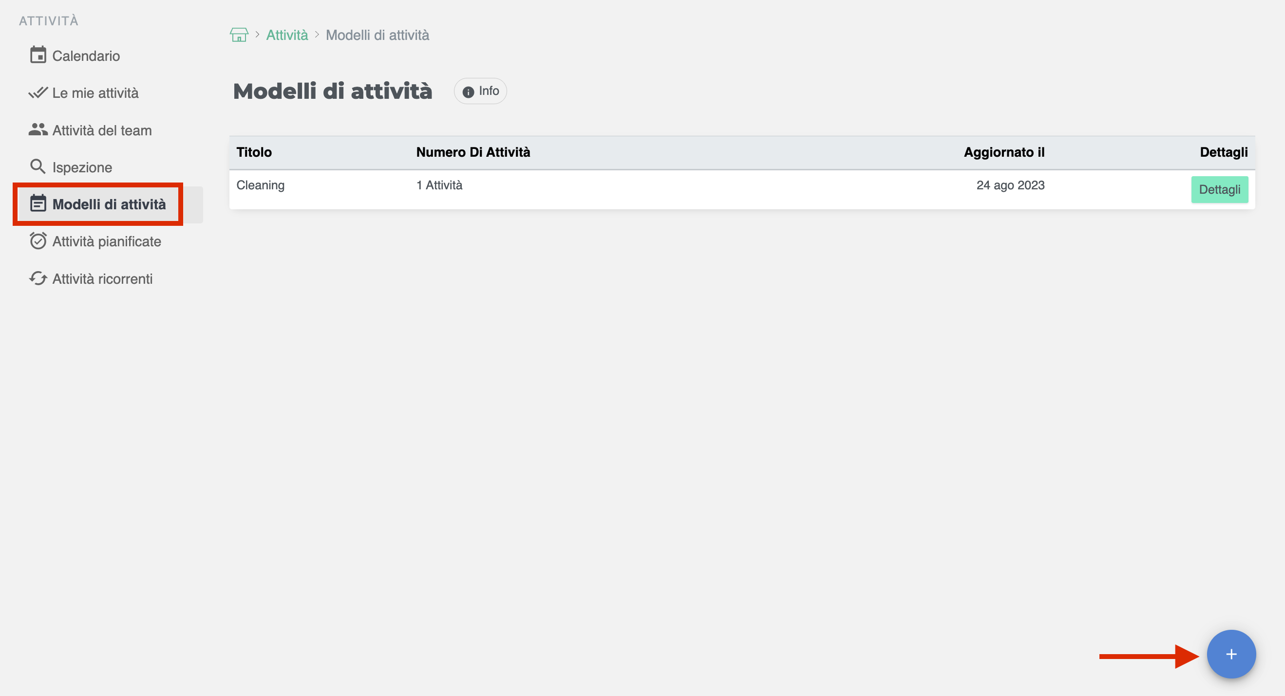 Esempio: Supponiamo che tu debba impostare un solo modello di compito di pulizia all'inizio. Questo modello include tutto ciò che il tuo staff di pulizia deve fare, così non dovrai creare nuovi compiti ogni volta che un alloggio deve essere pulito.