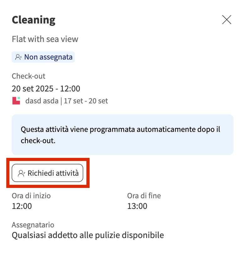 - Se l’attività non è ancora assegnata, puoi cliccare su Richiedi attività per prenderla.