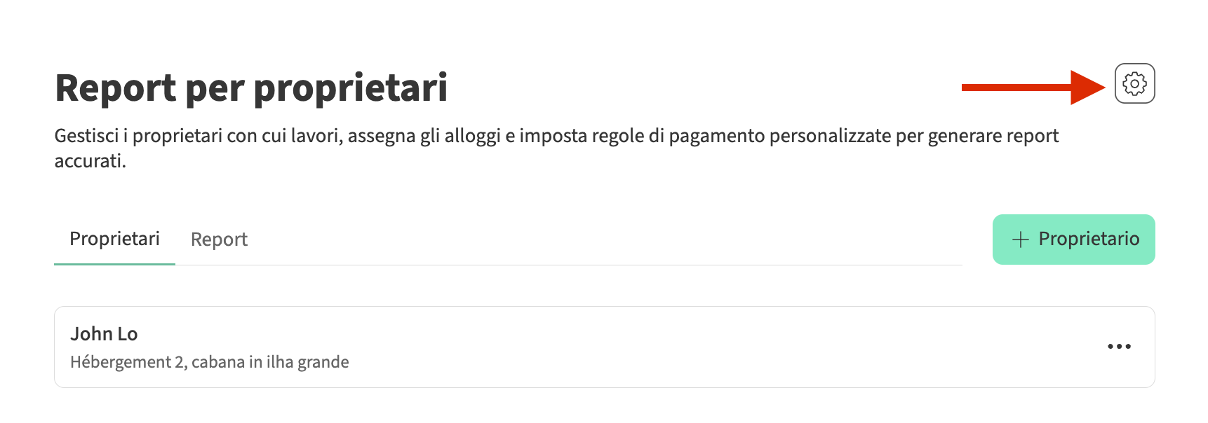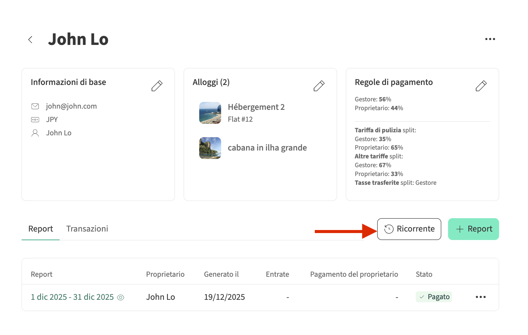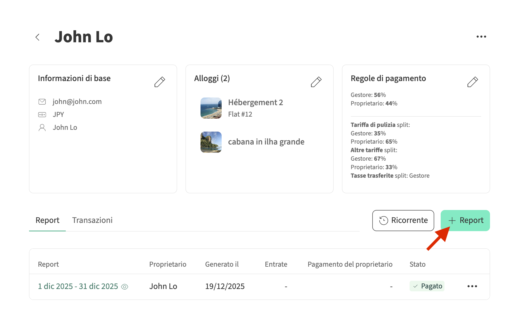 - Clicca sul proprietario per cui desideri creare un nuovo resoconto, quindi seleziona + Resoconto.