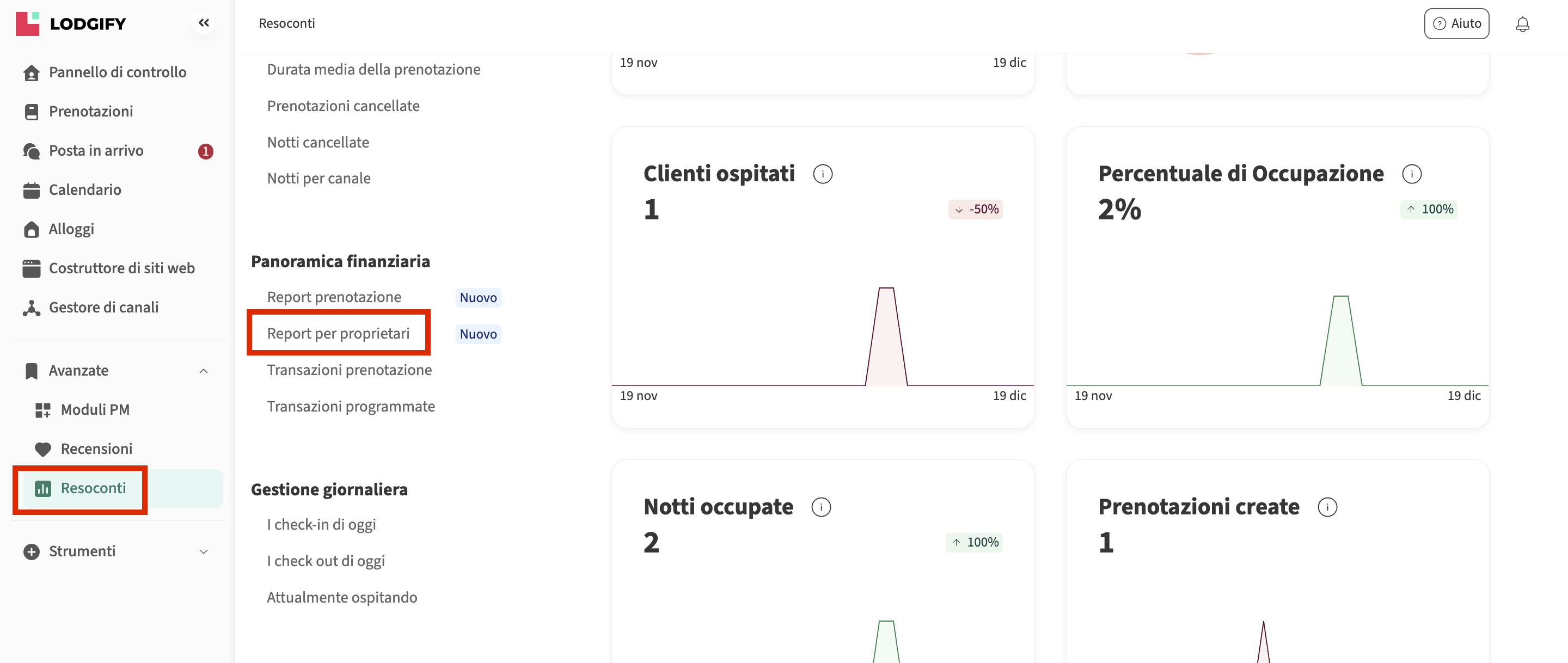 - Seleziona Report per proprietari dalla barra laterale sinistra.