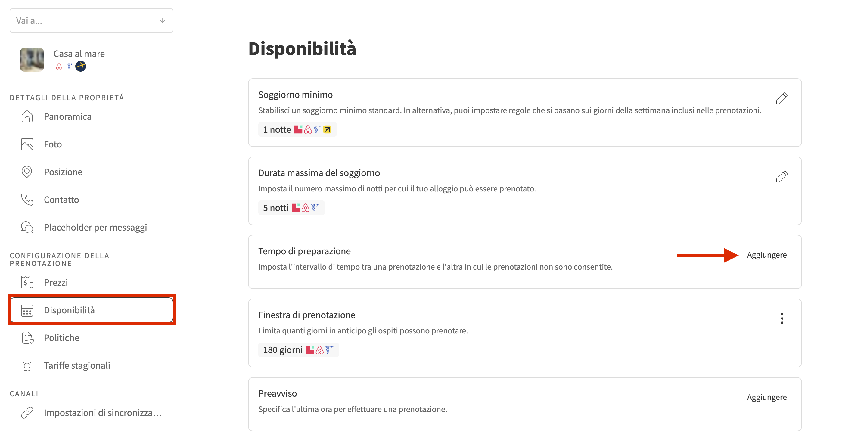 Per stabilire un tempo di preparazione per il tuo alloggio, devi farlo nelle impostazioni dell'alloggio.