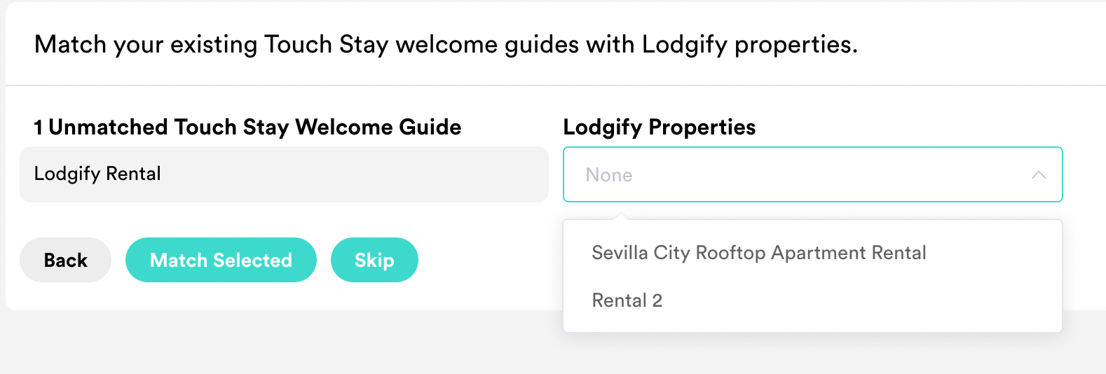 - Successivamente, associa le tue guide di Touch Stay ai tuoi alloggi importati da Lodgify.