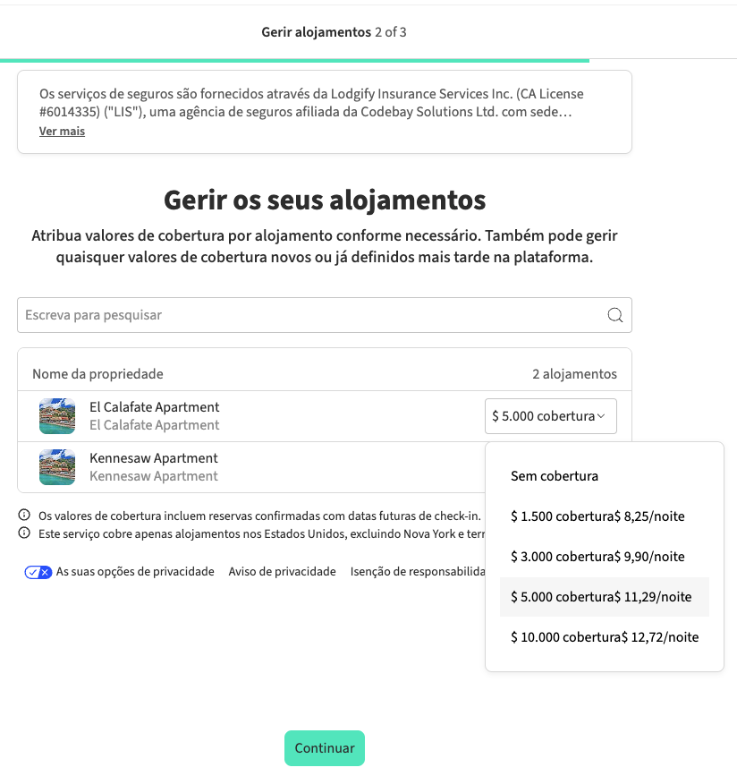 💡 Nota: Cada propriedade pode ter um valor de cobertura diferente, que poderá escolher no passo seguinte. -