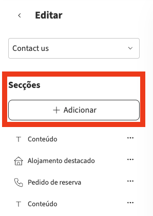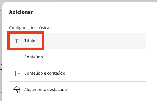 Pode incluir Títulos nas páginas do seu site na secção Páginas do criador de sites. Clique nos três pontos ao lado do título da página e selecione Editar. Selecione Adicionar e depois Título.