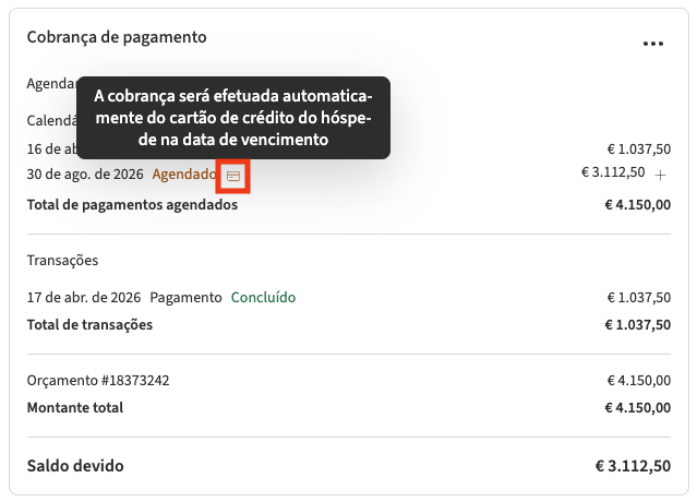 - Se vir um ícone de cartão de crédito ao lado do pagamento agendado, as Cobranças Automáticas estão ativadas para esse pagamento.