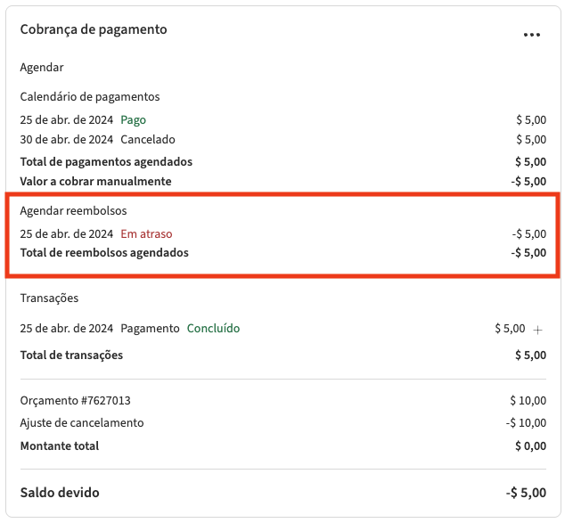Se os Reembolsos automáticos não estiverem ativados, o sistema não processará o reembolso por si só. Em vez disso, o reembolso será marcado como Agendado e terá de o emitir manualmente.