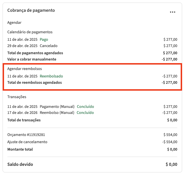 💡 Nota: Os reembolsos emitidos automaticamente são marcados a verde como Reembolsado nos detalhes da reserva.