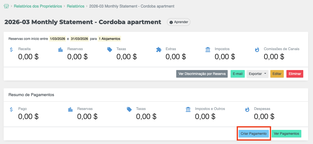 - Clique em Criar pagamento dentro do extrato.