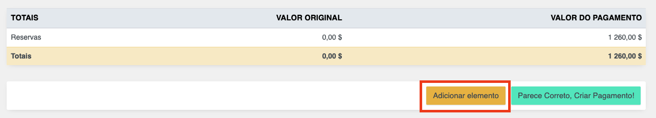- Se não forem necessárias alterações adicionais, proceda para criar o pagamento.