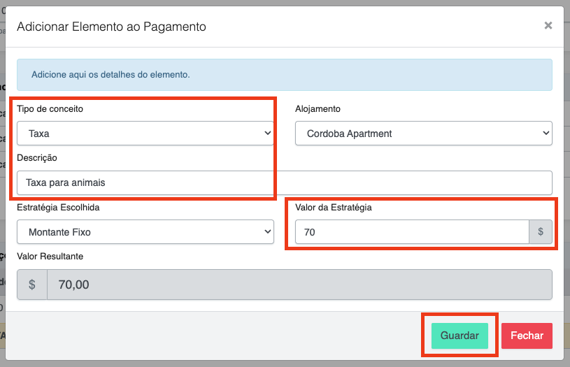 - Após guardar, o Serviço extra aparecerá na discriminação do pagamento.