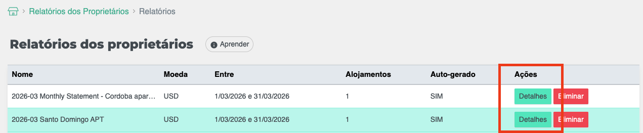 Vá à secção de Extratos e localize o extrato para o alojamento e datas relevantes.