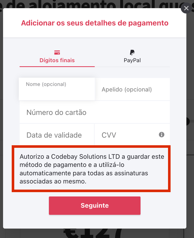 Esta informação está descrita nos nossos Termos e Condições aceites no momento da subscrição (ver ponto 7/e), e também é exibida quando introduz os seus dados de pagamento, por exemplo, durante o processo de subscrição ou ao alterar o seu plano:
