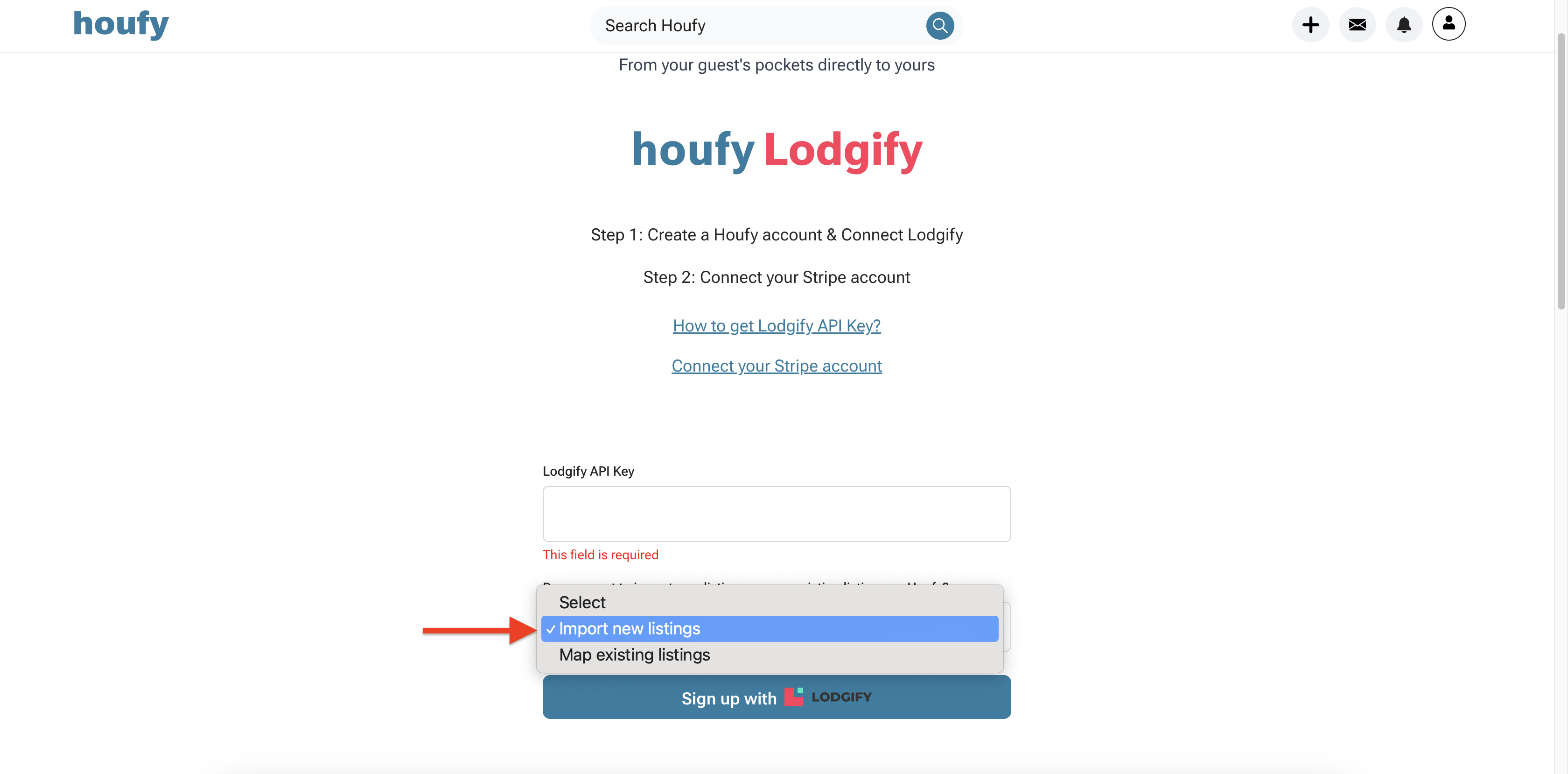 Configurar a ligação entre Lodgify e Houfy