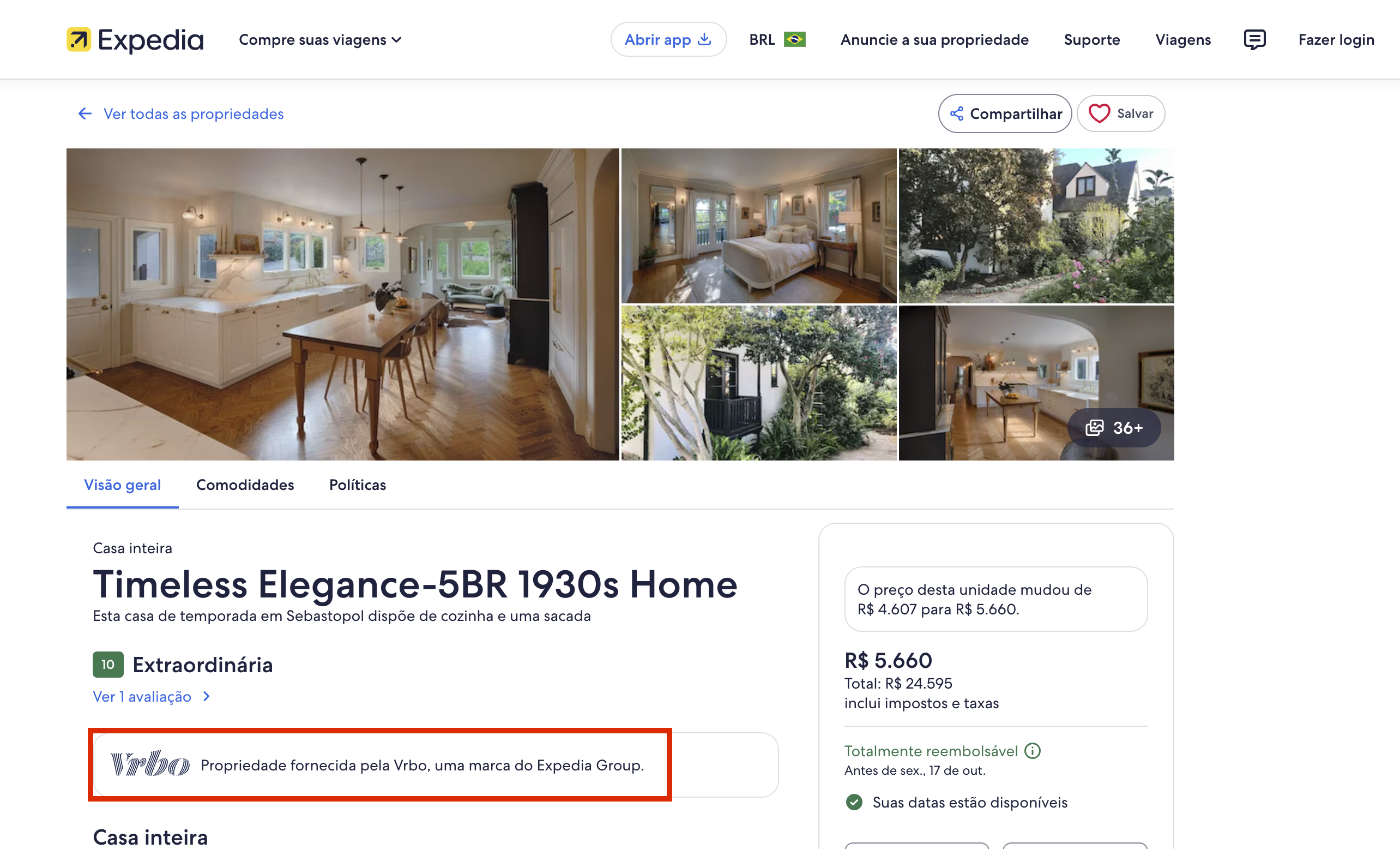 - É assim que o seu alojamento será apresentado no Expedia, com uma menção indicando que o alojamento é fornecido pelo Abritel: