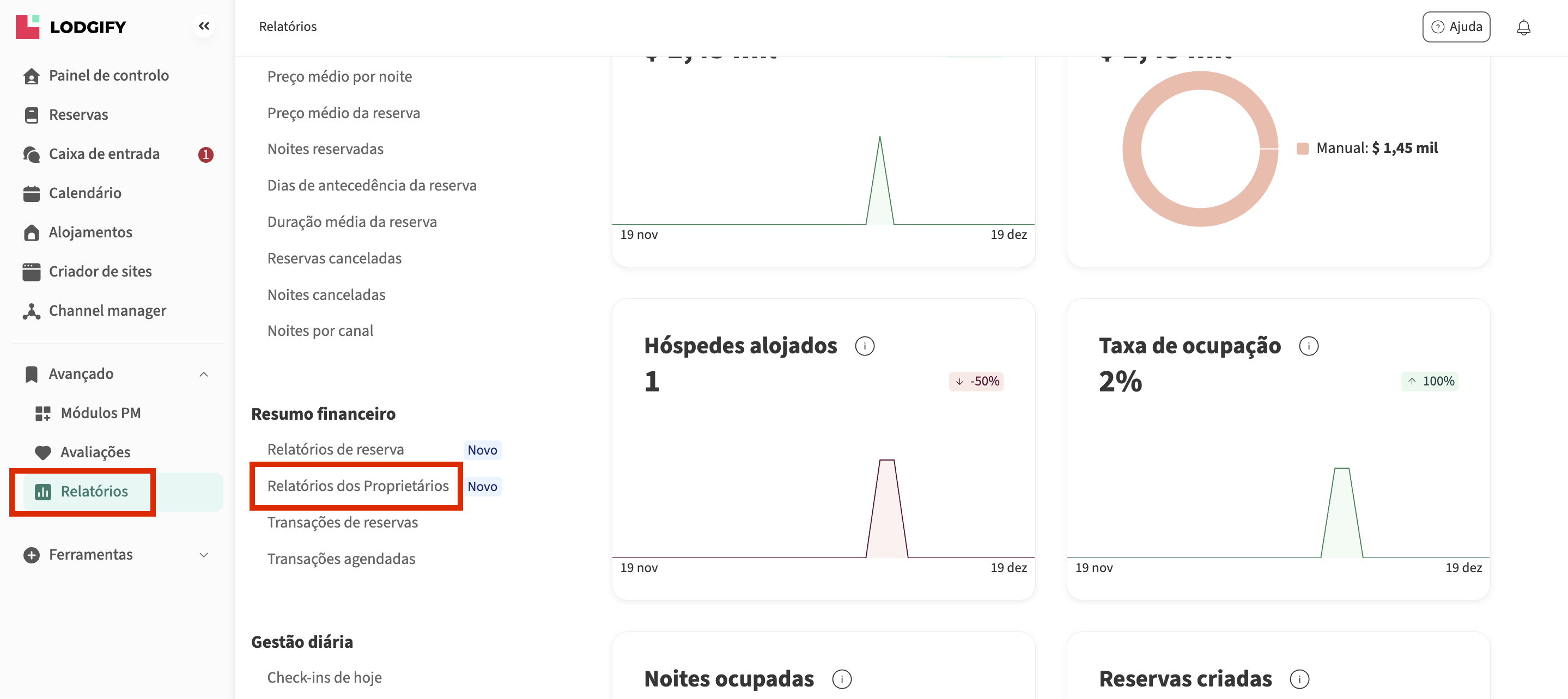 - Selecione Relatórios dos Proprietários na barra lateral esquerda.