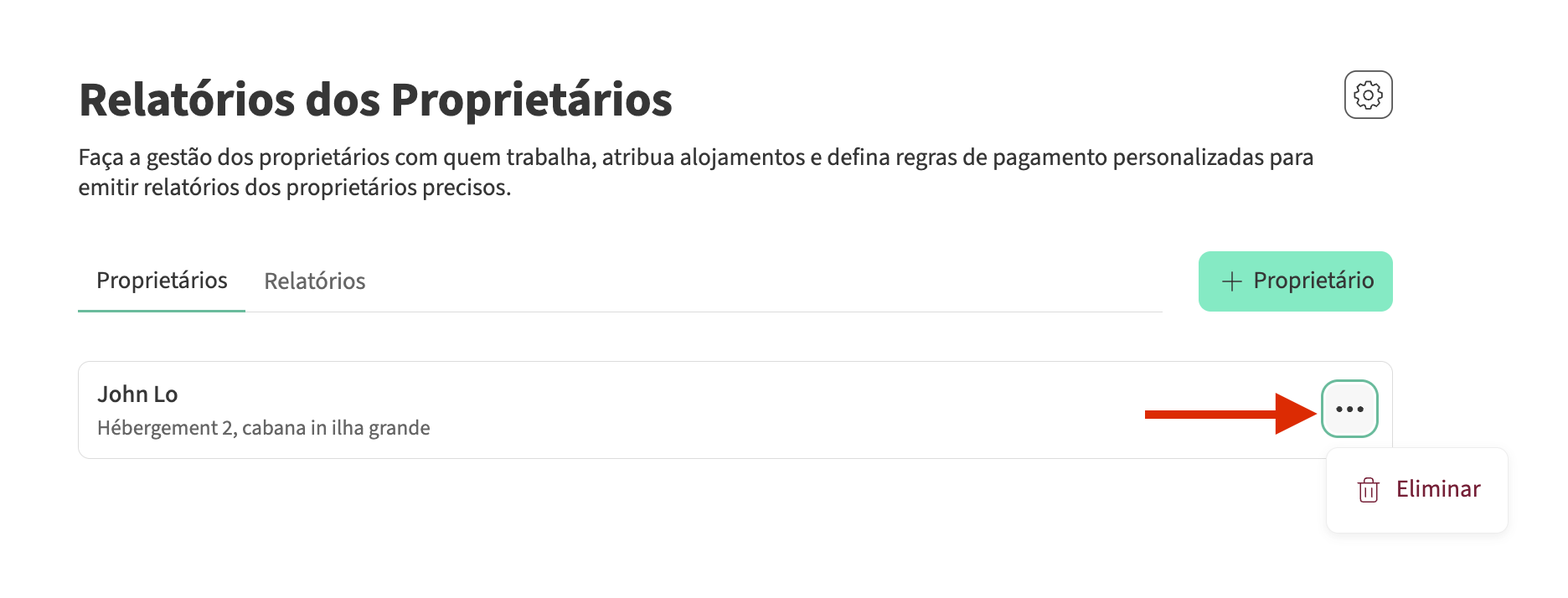 Aprenda como criar, editar e excluir proprietários no módulo de relatórios dos proprietários.