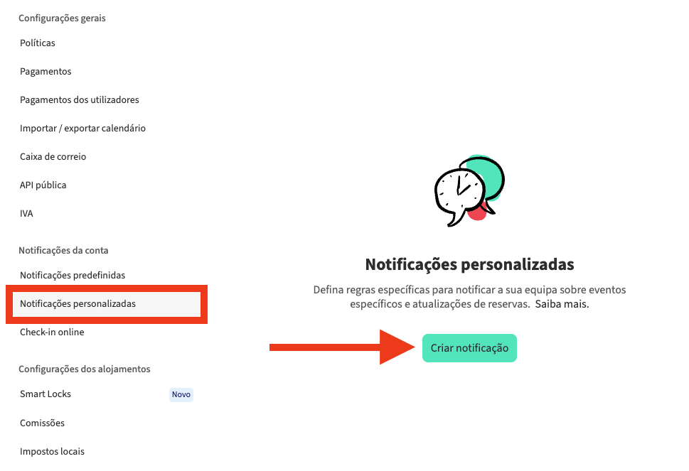⚠ Importante: As notificações personalizadas são sempre enviadas no fuso horário da propriedade associada e podem demorar alguns minutos para chegar.