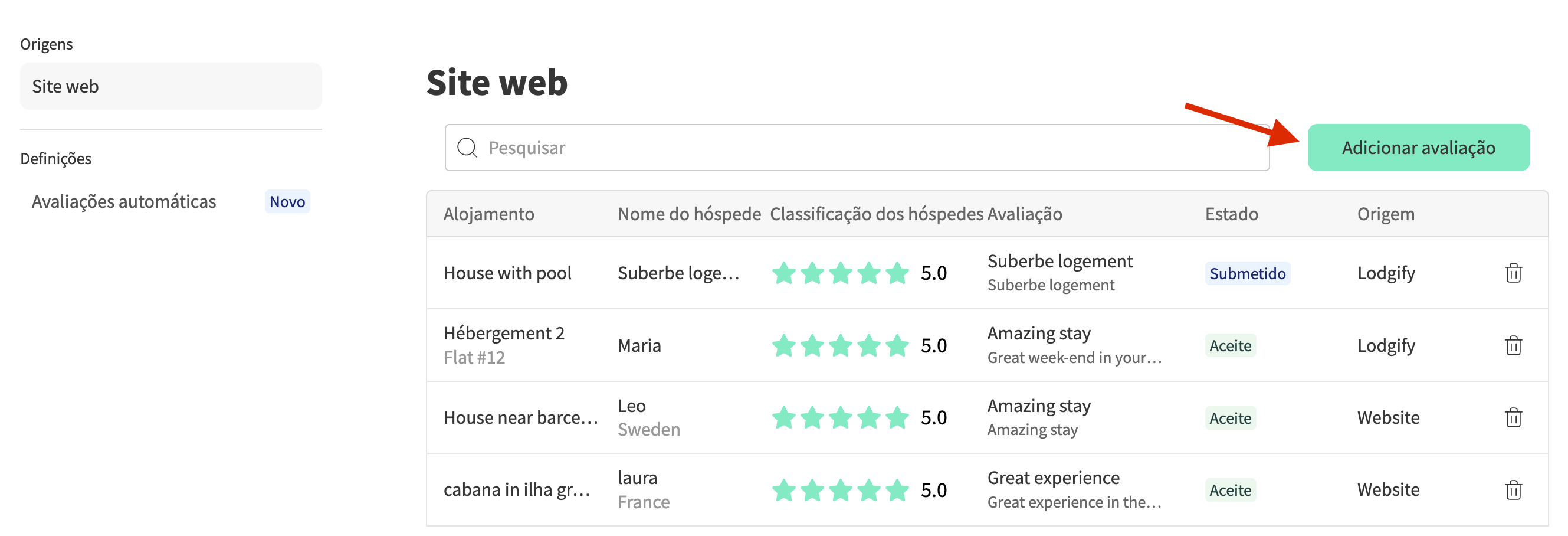 - Pode enviar o link da página de Avaliações para os seus hóspedes para que possam deixar uma avaliação.