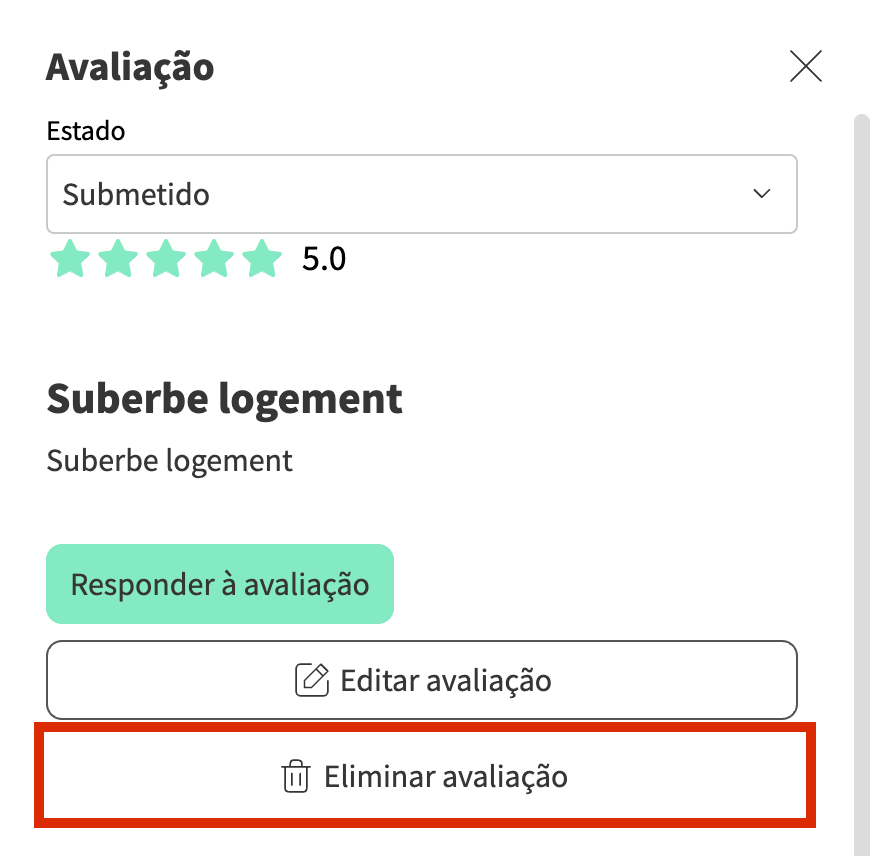 Se quiser excluir uma avaliação até mesmo do seu editor, pode fazê-lo. Basta clicar em Eliminar avaliação na parte inferior. |
