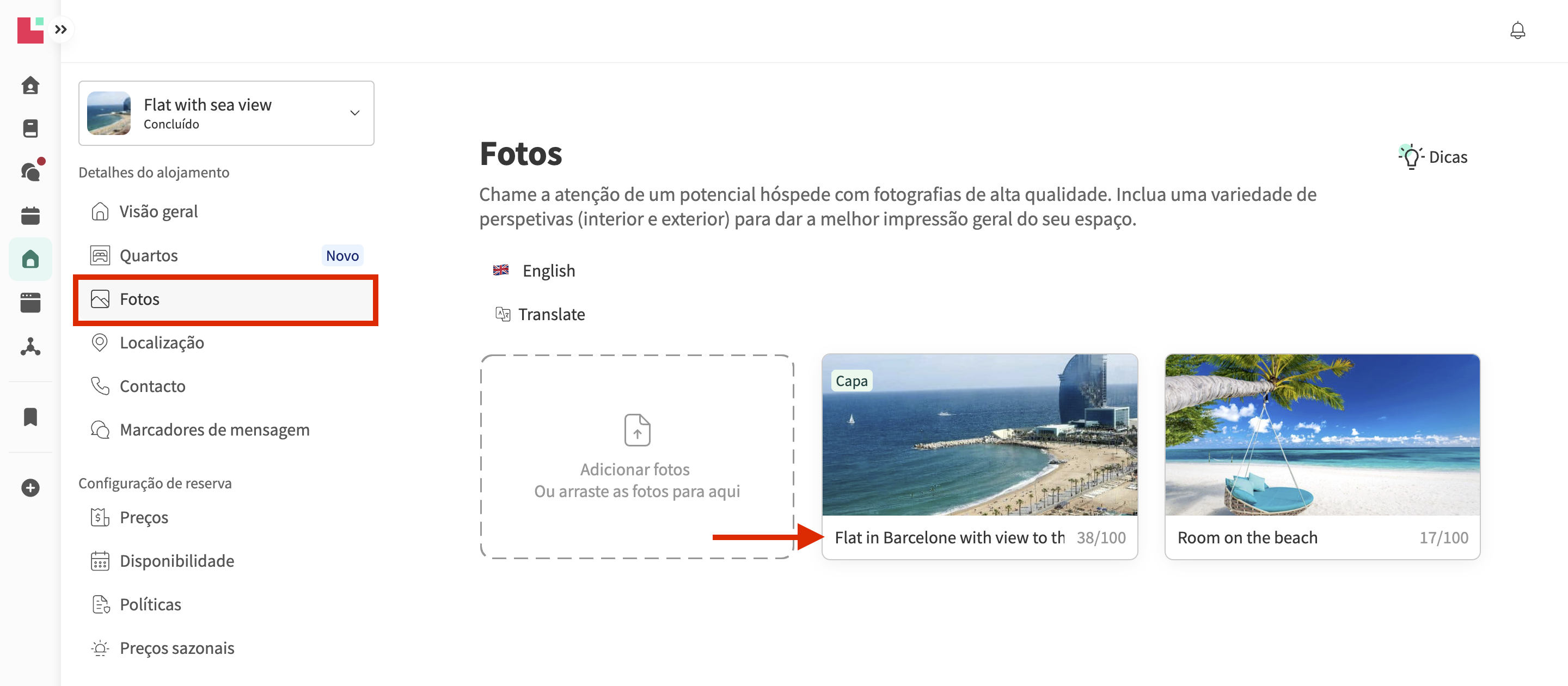 A legenda de uma foto do alojamento fornecerá automaticamente os atributos alt e title. Para definir uma legenda para uma foto do alojamento, siga estes passos: