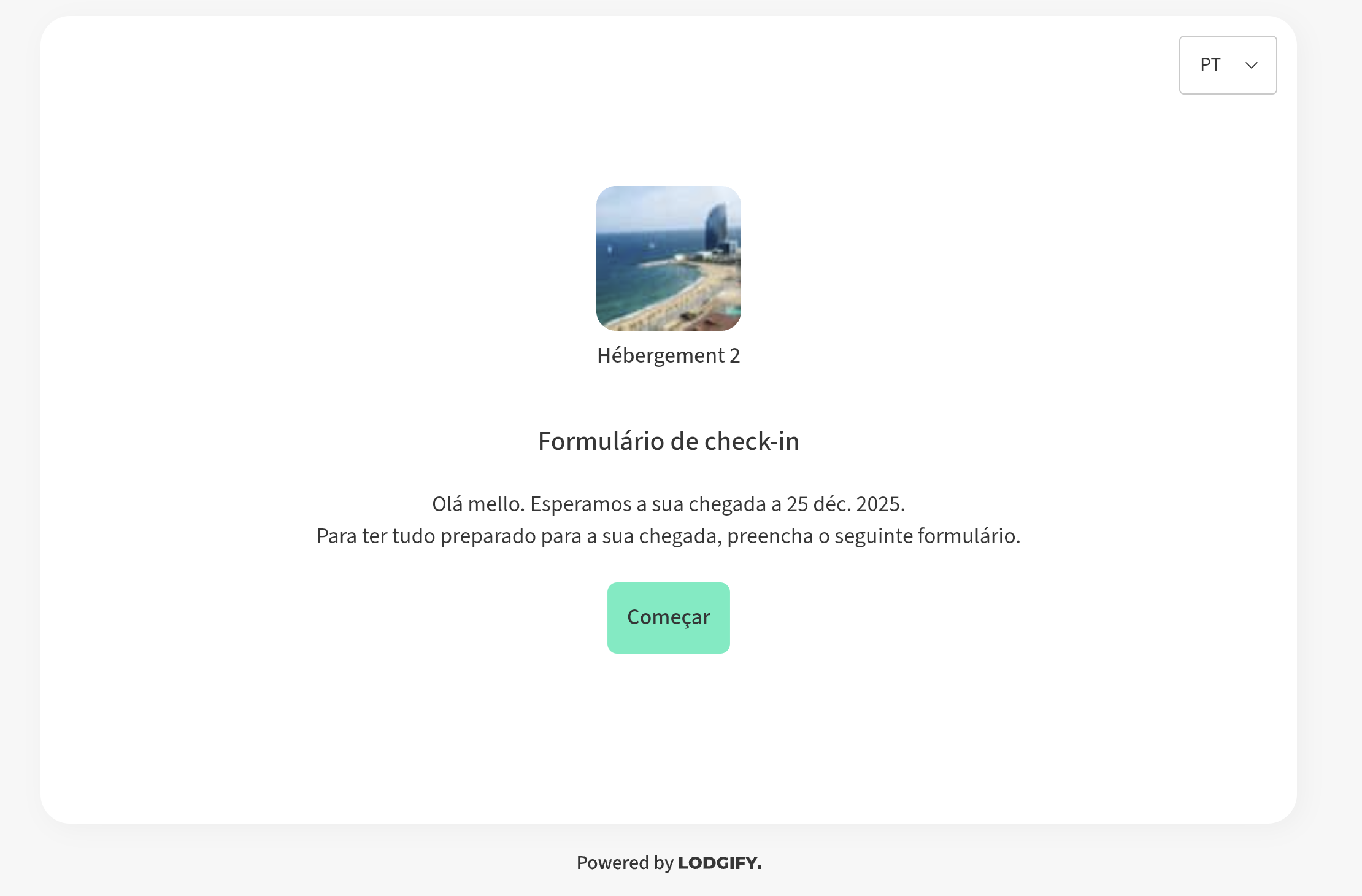 - Quando o hóspede abre o link do formulário de check-in de reserva, verá a página onde pode preencher o formulário: