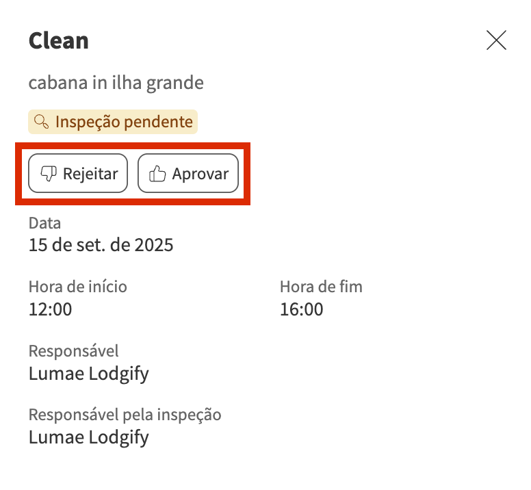 Algumas tarefas, como limpeza ou manutenção, podem exigir uma verificação de qualidade após a conclusão. Se a inspeção estiver ativada, o supervisor pode rever o trabalho e aprová-lo ou rejeitá-lo.