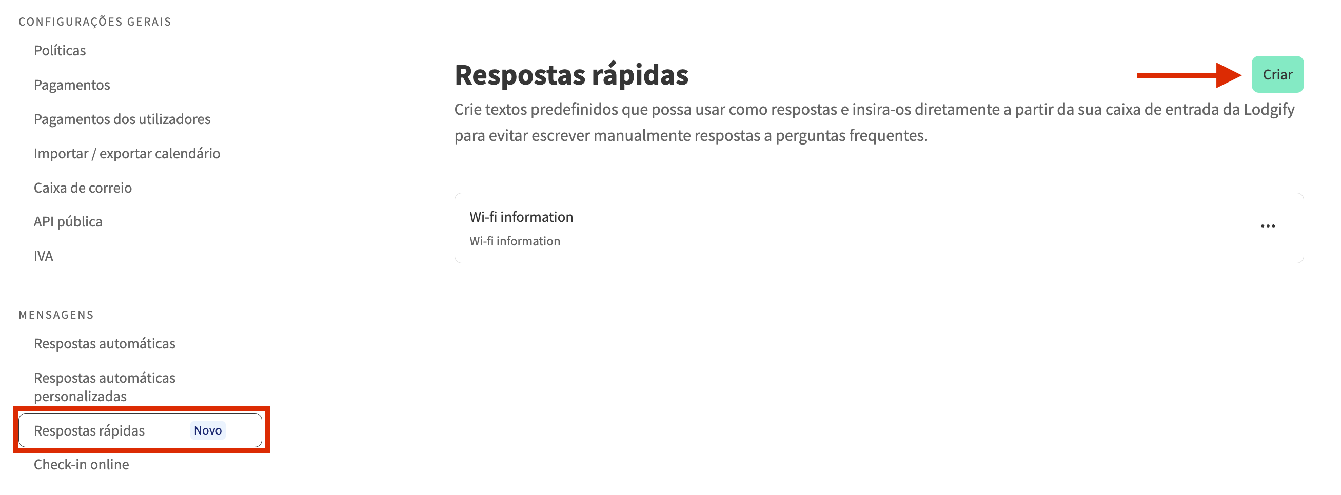 Para usar respostas rápidas, primeiro precisa configurá-las, para que possa reutilizá-las sempre que surgir uma pergunta semelhante dos seus hóspedes.