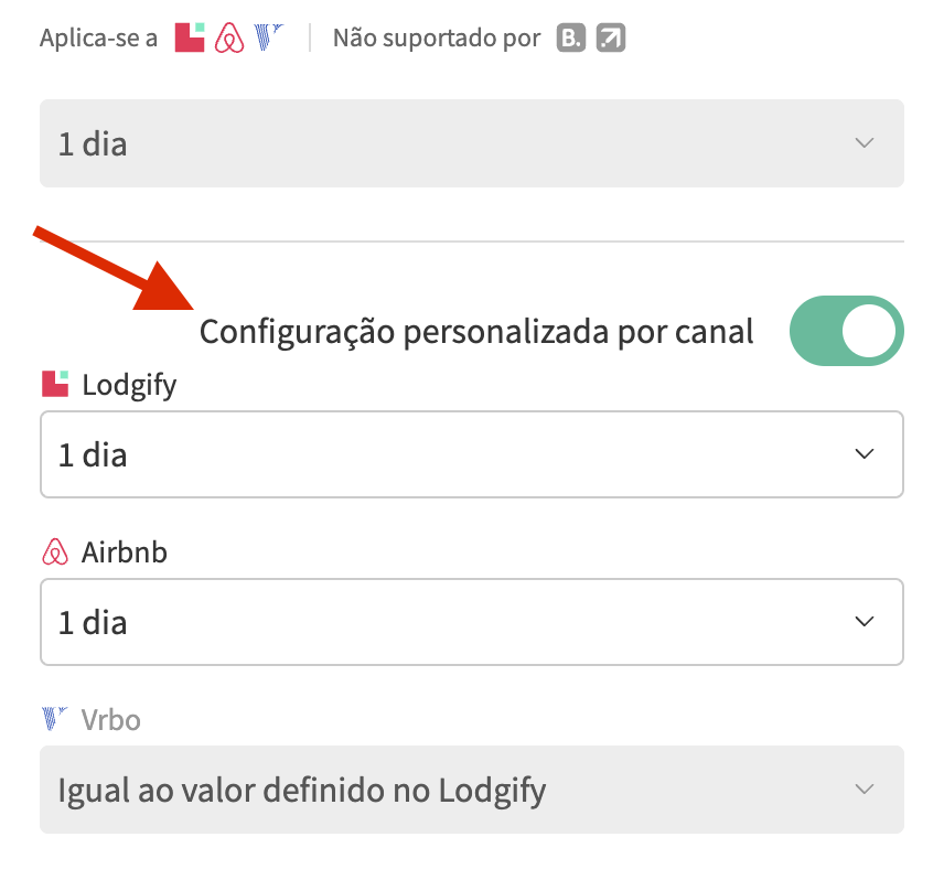 | Deve ser configurado na Lodgify. 💡 Nota: Os períodos fechados que foram configurados no Airbnb, Booking.com, Expedia ou Vrbo não se aplicam mais após a conexão. | |||