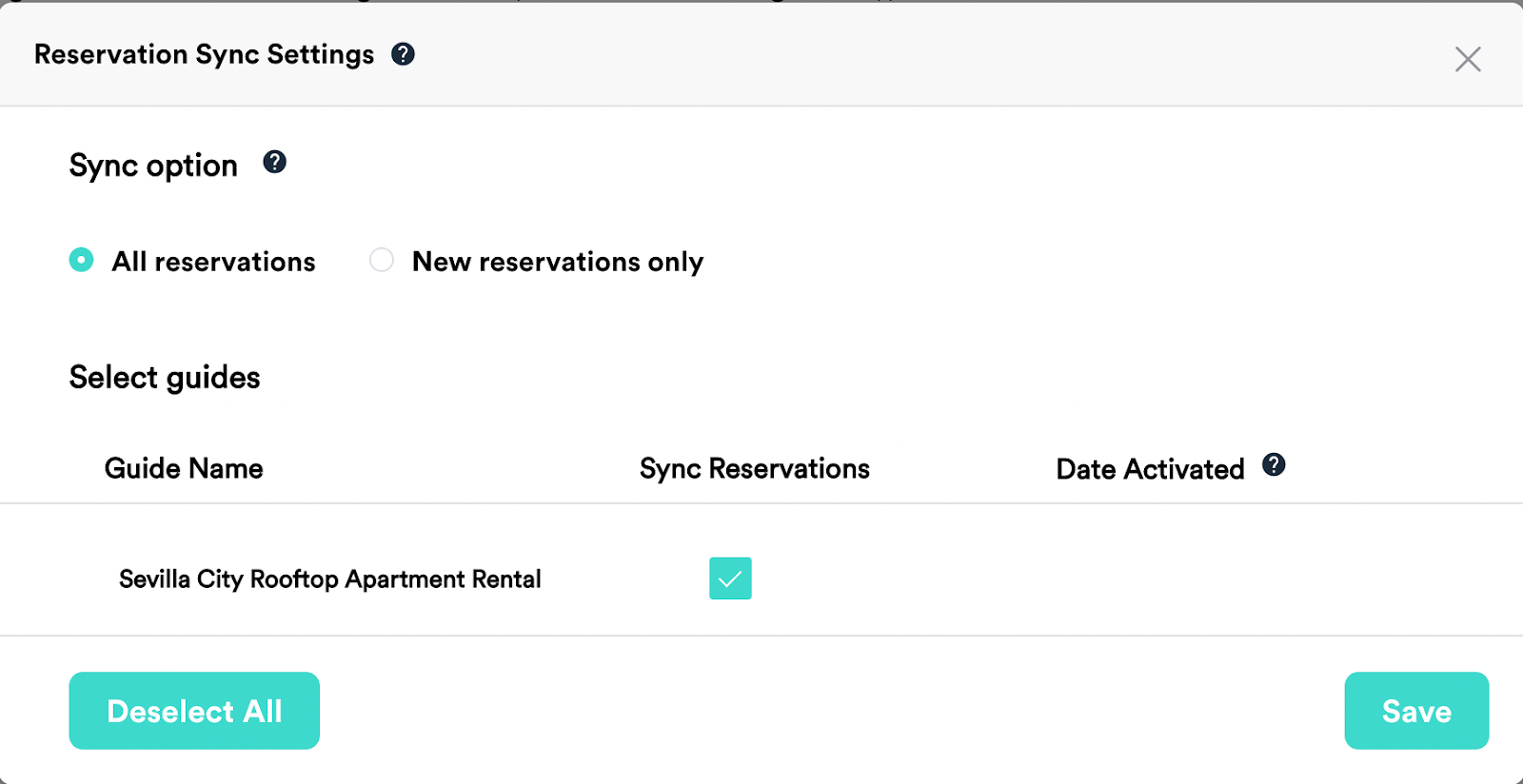 - Selecione as propriedades e reservas que pretende sincronizar.